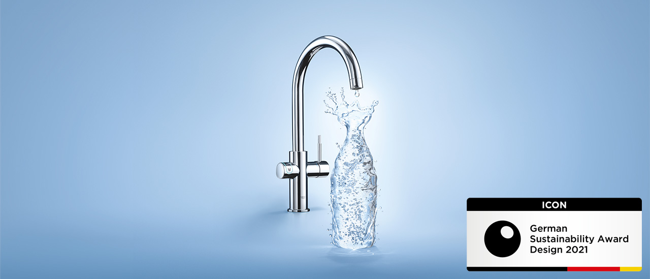 Le design est un facteur clé du changement : la conception responsable contribue de manière significative à la transformation vers une société durable. En plus de l'eau du robinet habituelle, le système innovant GROHE Blue permet aux consommateurs d'avoir de l'eau filtrée et réfrigérée sous forme plate, fines bulles ou pétillantes - à l'aide d'un système complètement hygiénique avec deux voies d'eau internes séparées. Les utilisateurs n'ont donc plus besoin d'acheter de lourdes bouteilles d'eau. Les bouteilles ainsi économisées contribuent de manière significative à la réduction du plastique et du CO2.